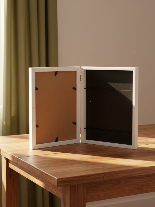 Ietilpīgākais rāmis ir atverams un tam ir magnētiska aizdare, kā arī iestrādātas gumijas, kas droši tur zīmējumus rāmī.