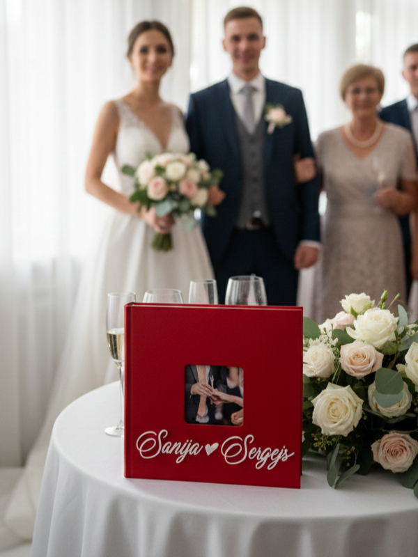 Īpaši pateicīga viesu grāmata, ja vēlaties tajā līmēt Polaroid bildes, jo pergamenta starplapas tās pasargās no dzeltēšanas un vākus būs iespējams aizvērt, kas nav iespējams, ja bildes līmē tradicionālā viesu grāmatā.